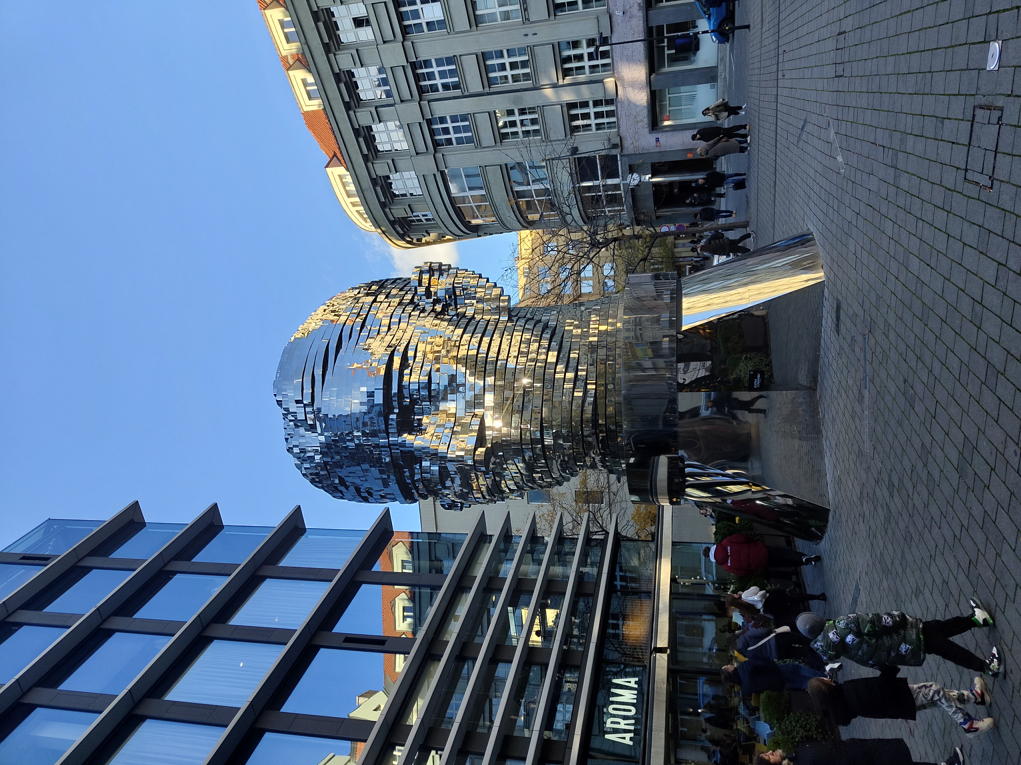 Saw the Rotating Head of Kafka by David Černý—42 moving panels creating a constantly morphing face.
