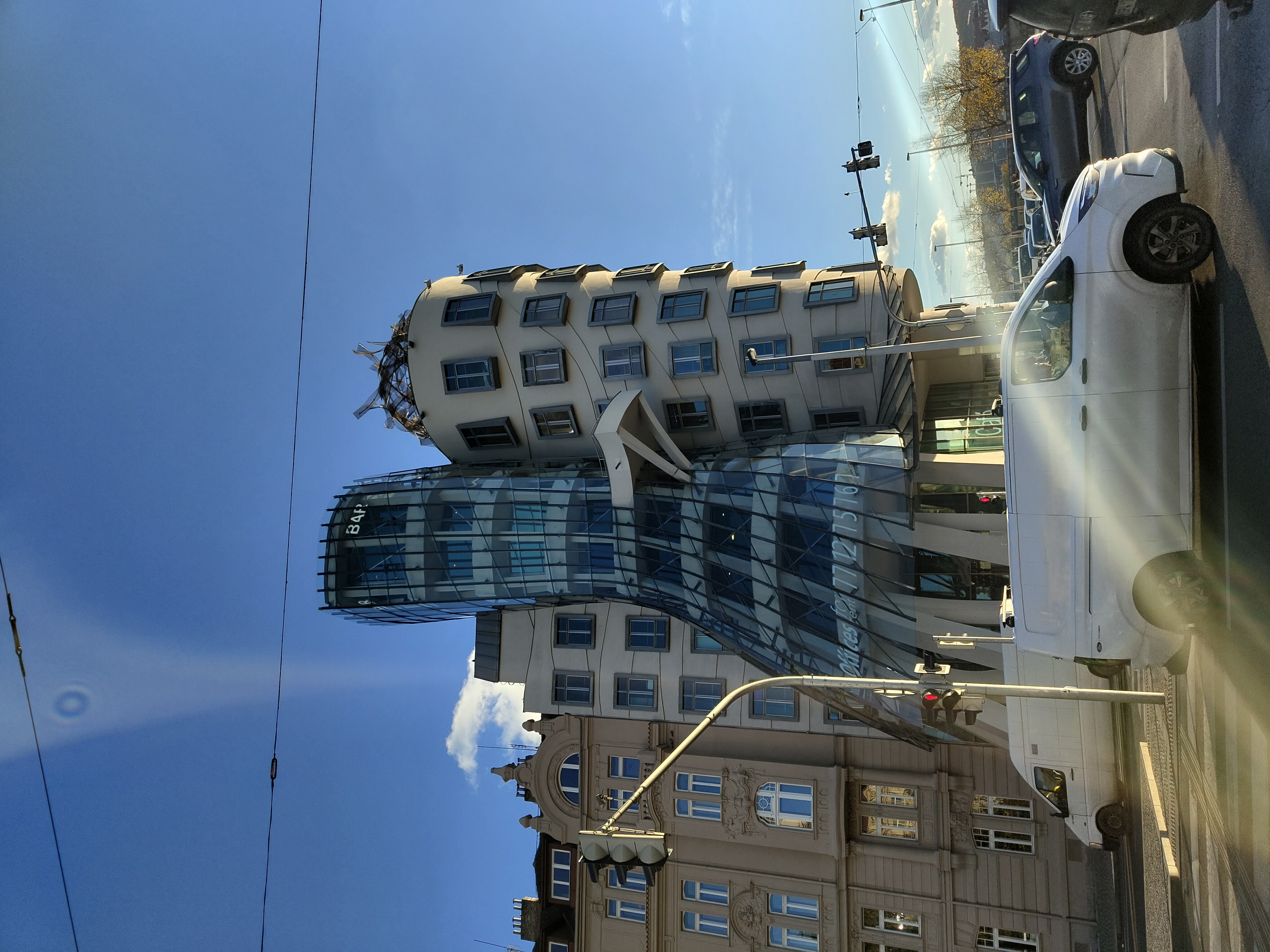 Walked past the National Theatre, then to the Tančící dům (Dancing House)—the Gehry building that looks like two dancers.